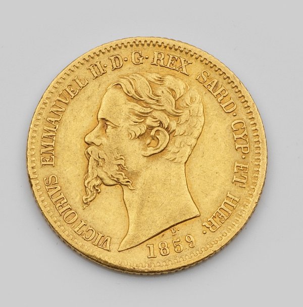 Coin "Italy 20 lire Vittorio Emanuelle 1859" in 21,6 k gold.