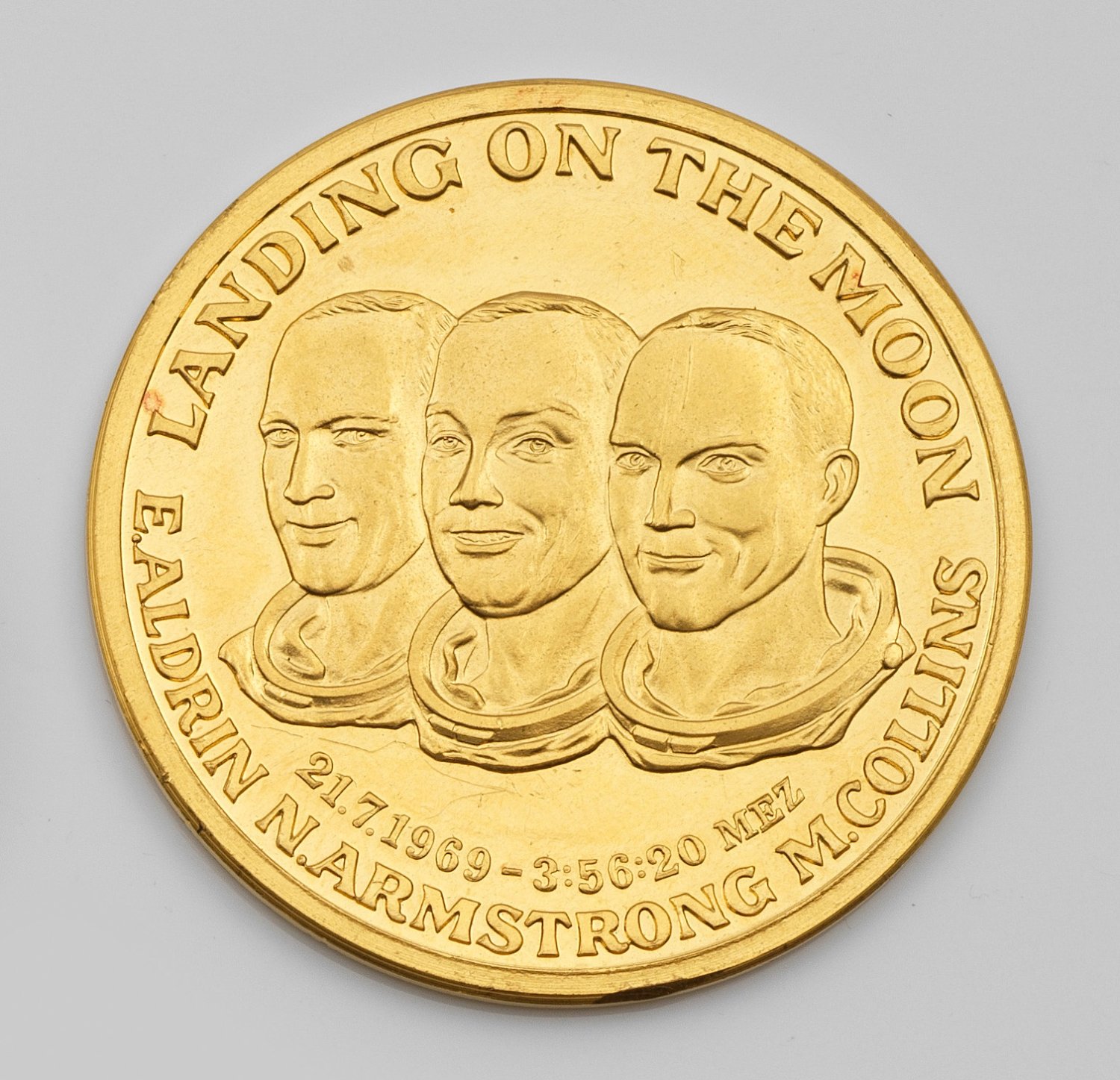 Medal "Landing on the Moon 1969" in 24 k gold by Verlag Internationaler Gedenkmünzen, Munich.