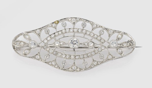 Lot 1073: Feine Jugendstil Diamant-Brosche in Ajour