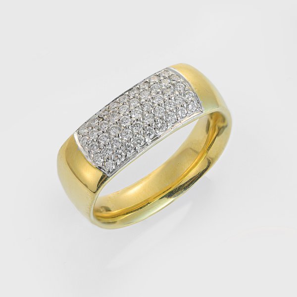 Gelbgold, 18 k. Schauseitig besetzt mit Brillanten von zus ca. 0,45 ct. (G-H/vvs) in Pavéfassung. Gew. ca. 10,85 g.