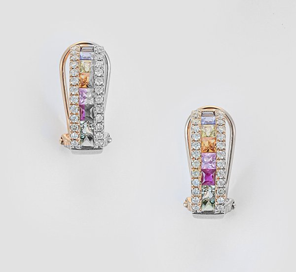 Lot 1220: Paar Multicolor Saphir-Ohrringe