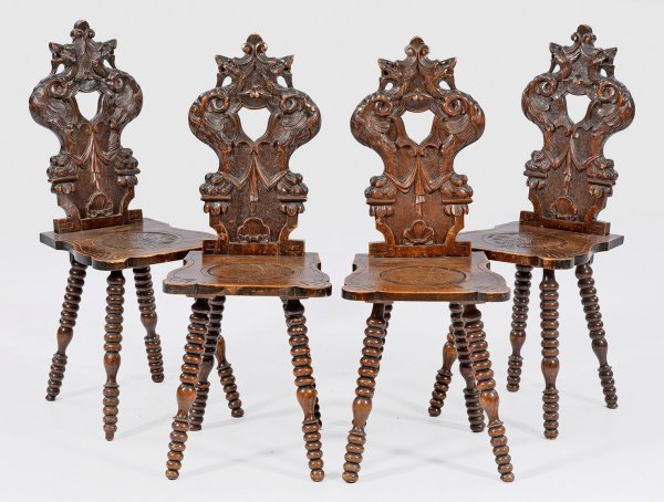Lot 1914: Satz von vier Barock-Brettstühlen