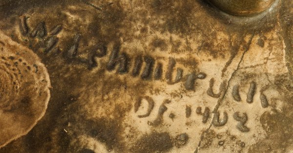 Plaster, painted in greenish grey. Signed and dated "Df. 1902". Restored, some flaws.