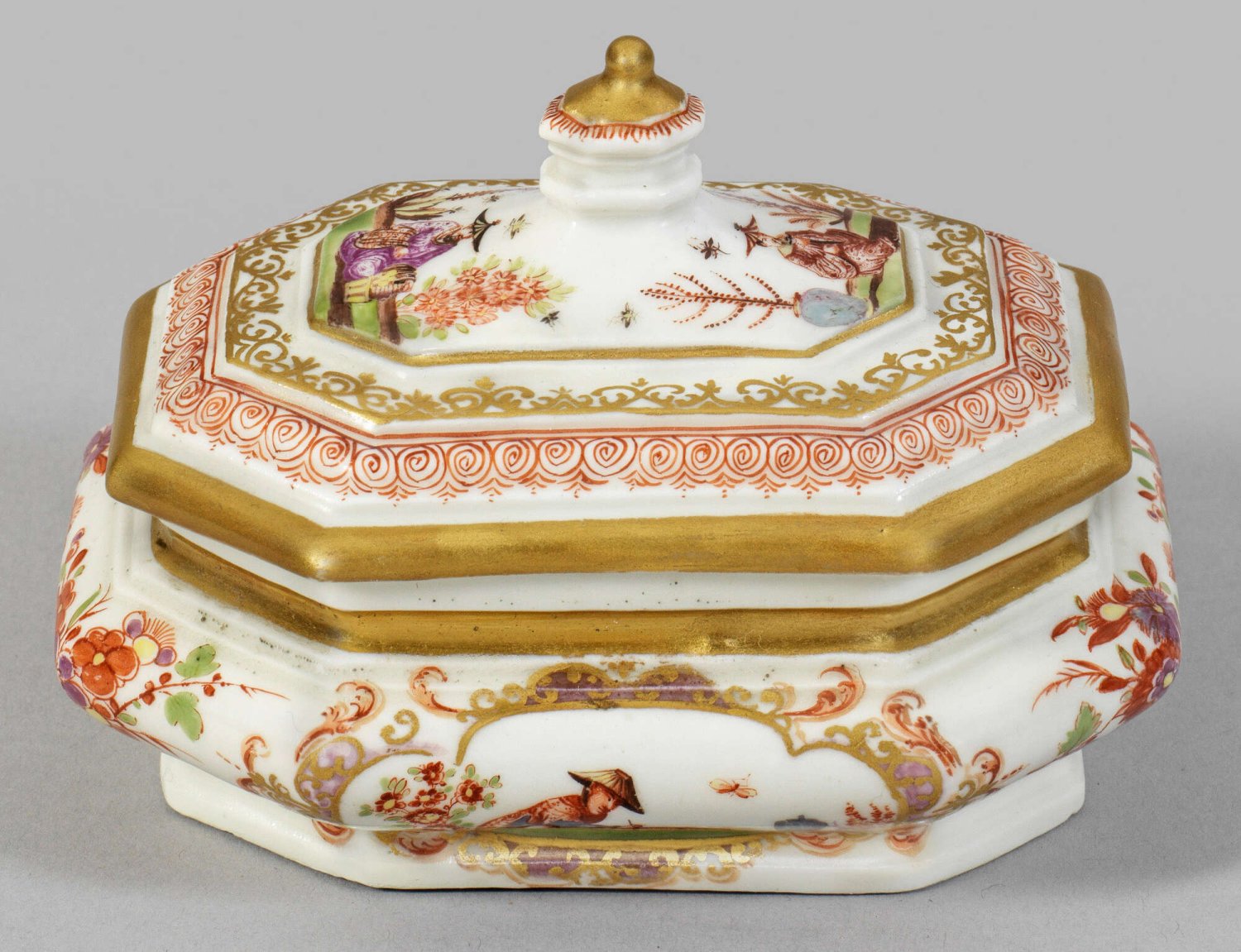 Lot 1070: Frühe Zuckerdose mit Hoeroldt-Chinoiserien