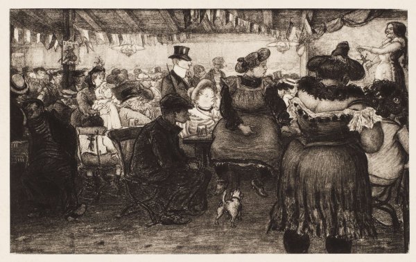 Heliogravüre/Velin. Nach einer Zeichnung des Künstlers. Ursprünglich für die Mappe "Zwölf Künstlerdrucke" (1909), hier der Neudruck zum 50. Todestag 1979. Darstellung 15,5 cm x 25 cm. Blatt 39,5 cm x 55 cm.