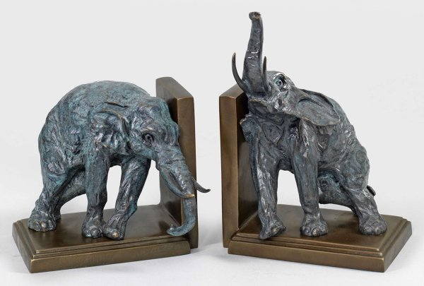 After Ary-Jean-Leon Bitter (1883 - 1973). Two patinated bronze elephants as bookends. Posthumous contemporary casts, late 20th/early 21st century.