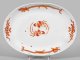 An oval porcelain bowl with "Red dragon" decor from the Saxony court kitchen. Rubbed. Crossed swords mark.
