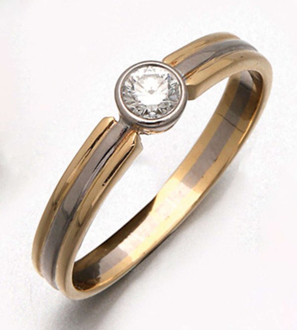 Feiner Brillant-Solitärring Gelbgold, gest. 750. Zentral besetzt mit einem Brillanten von zus. ca. 0,25 ct. (F-G/vvs). Gew. ca. 3,55 g.