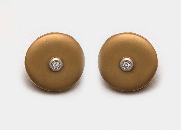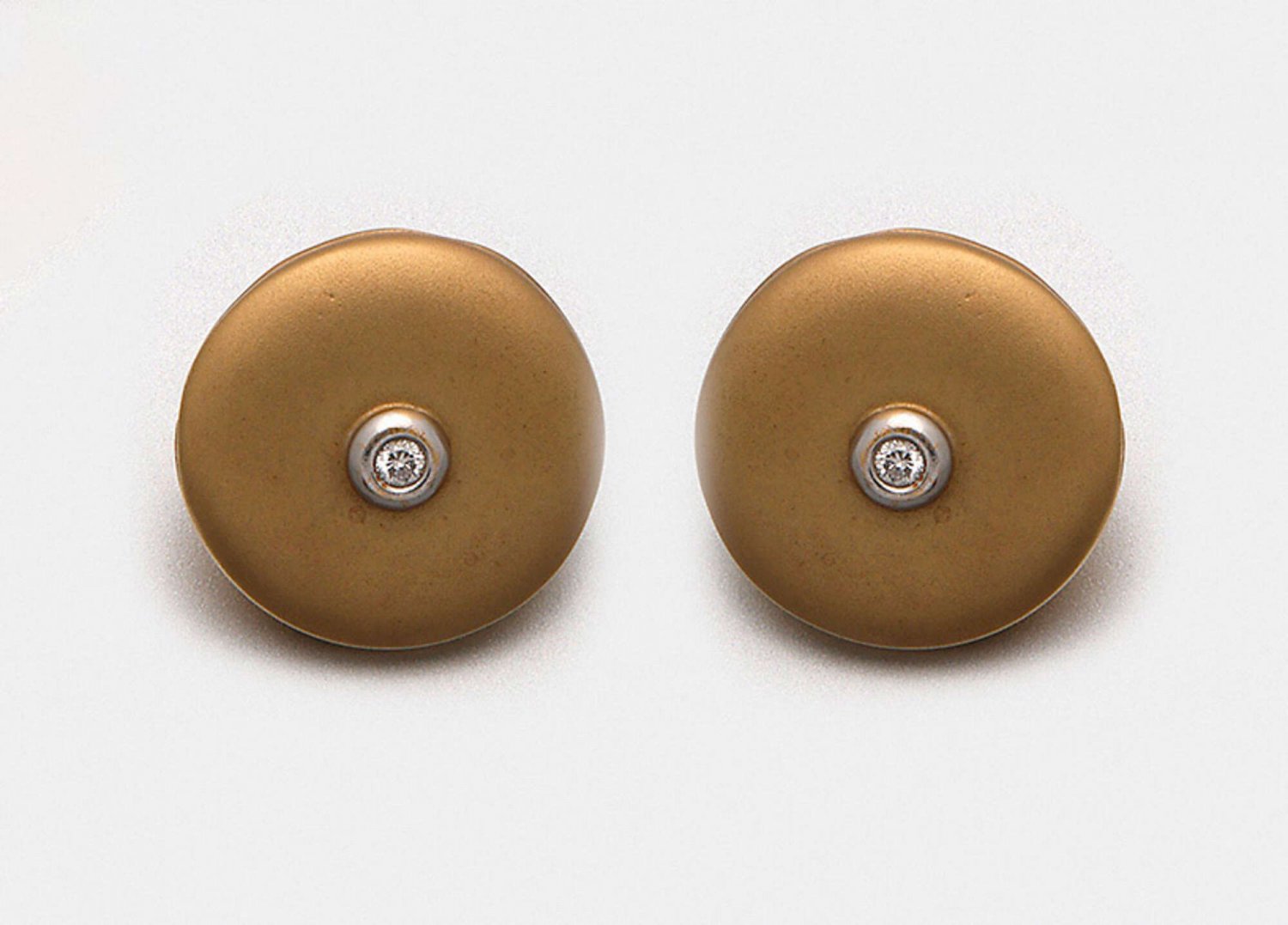 Paar moderne Brillant-Ohrringe Gelbgold, gest. 585. Zentral besetzt mit jeweils einem Brillanten von zus. ca. 0,08 ct.; Ges.-Gew. ca. 11,41 g.