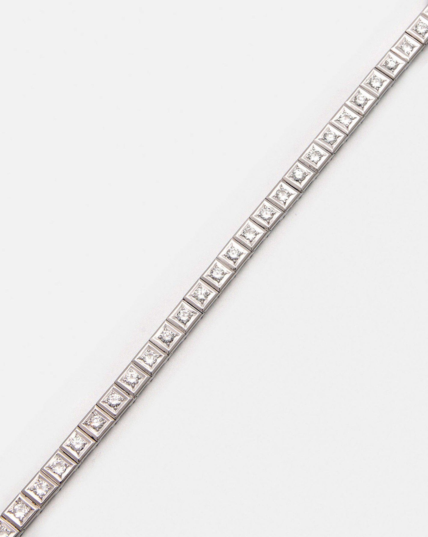 A bracelet set with 29 brilliants approx. 4,00 ct. (H/vvs), in 14 k white gold.