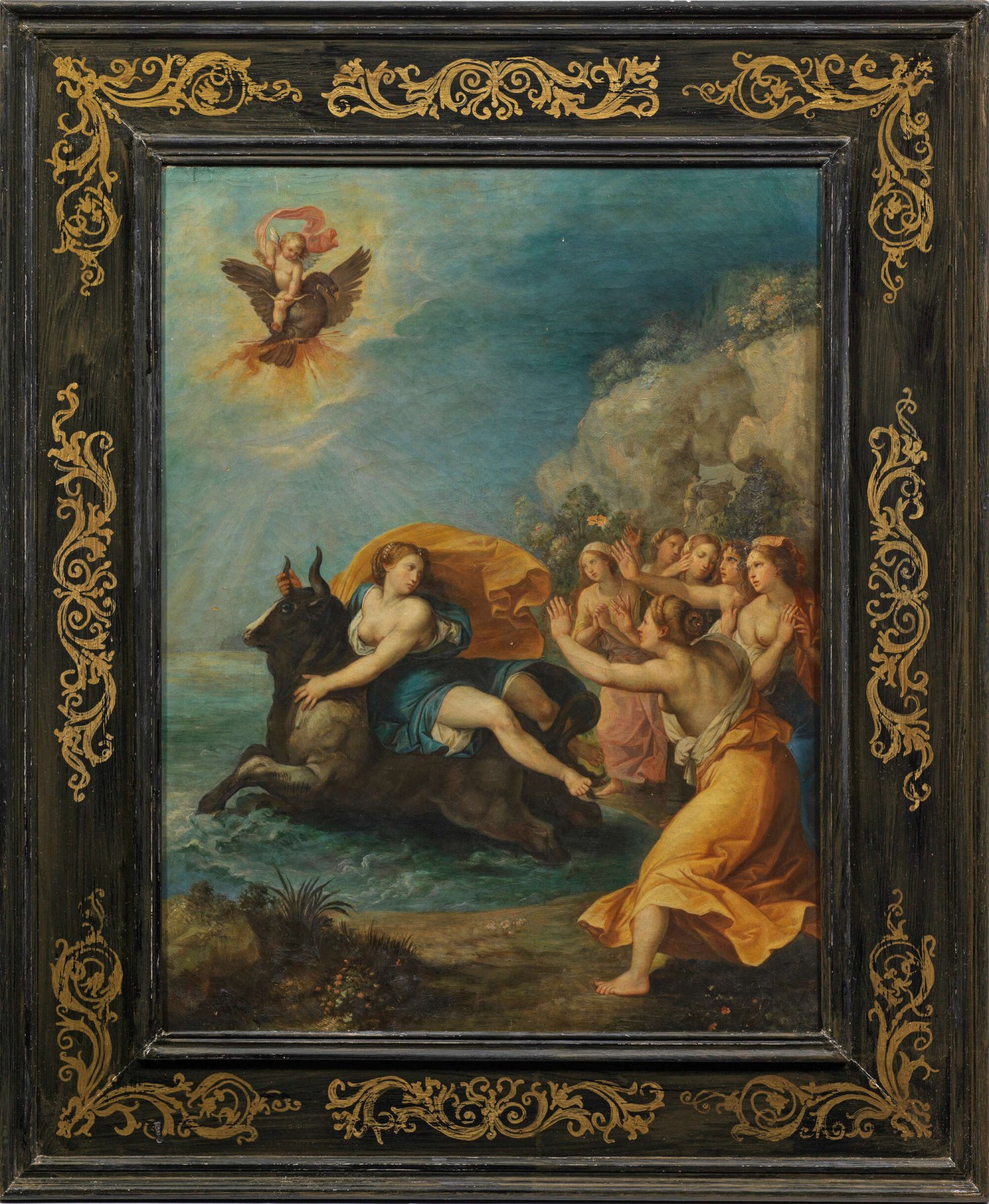 Meisterhafte Kopie von Stanislao Ferrazzi (1861 Castel Madama bei Rom - 1937 Rom) nach dem berühmten Barock-Gemälde von Cesari in der Galleria Borghese in Rom. Ferrazzi ist ein bekannter Kopist von Altmeistergemälden, der zahlreiche sogenannte Galeriekopien im Auftrag von Sammlern fertigte. Öl/Lwd.; Verso vom Künstler bez.: "S. Ferrazzi copio da Cesari". Rotes Beglaubigungssiegel der Galleria Borghese. 64 cm x 49,5 cm. Rahmen.
