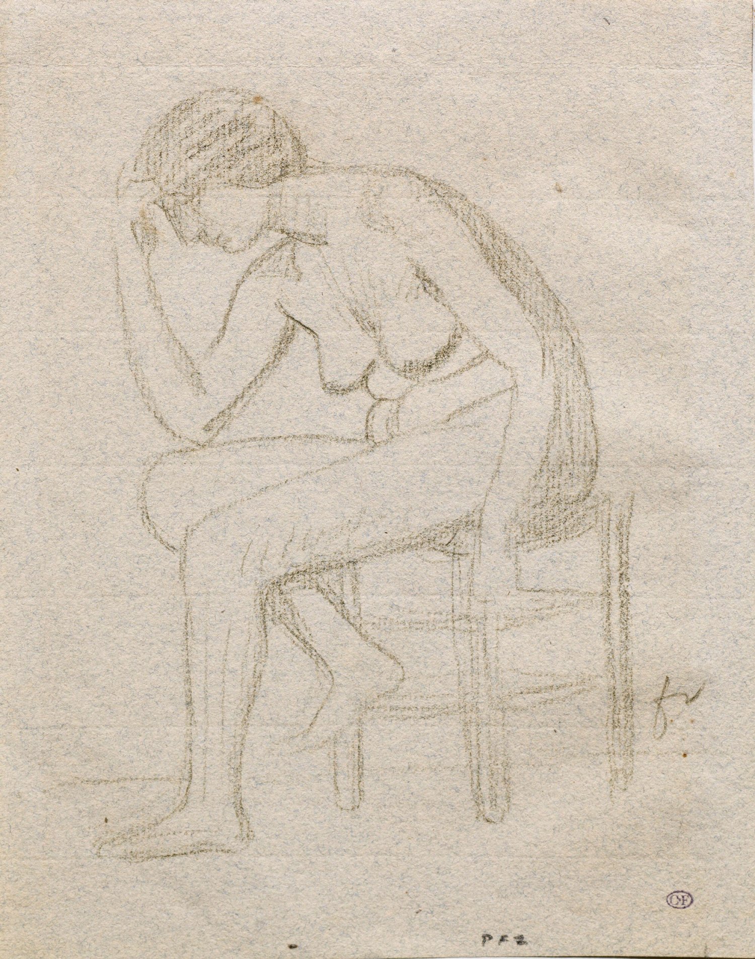 Pencil on laid paper. Monogrammed. Collector's seal.