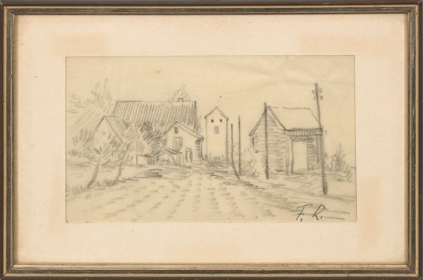 Wohl in den 1930 bis 1950er Jahren entstandene Landschaftsstudie Franz Radziwills, der seit 1923 in Dangast bei Varel ansässig war. Radziwill, der als Maler des Magischen Realismus in der Kunst des 20. Jhs. eine bedeutende Ausnahmeposition einnimmt, schilderte in zahlreichen seiner Werke Landschaften aus Dangast und Friesland. Bleistift/Papier. R. u. monogr.; 11 cm x 19 cm (Passepartoutausschnitt). Rahmen.