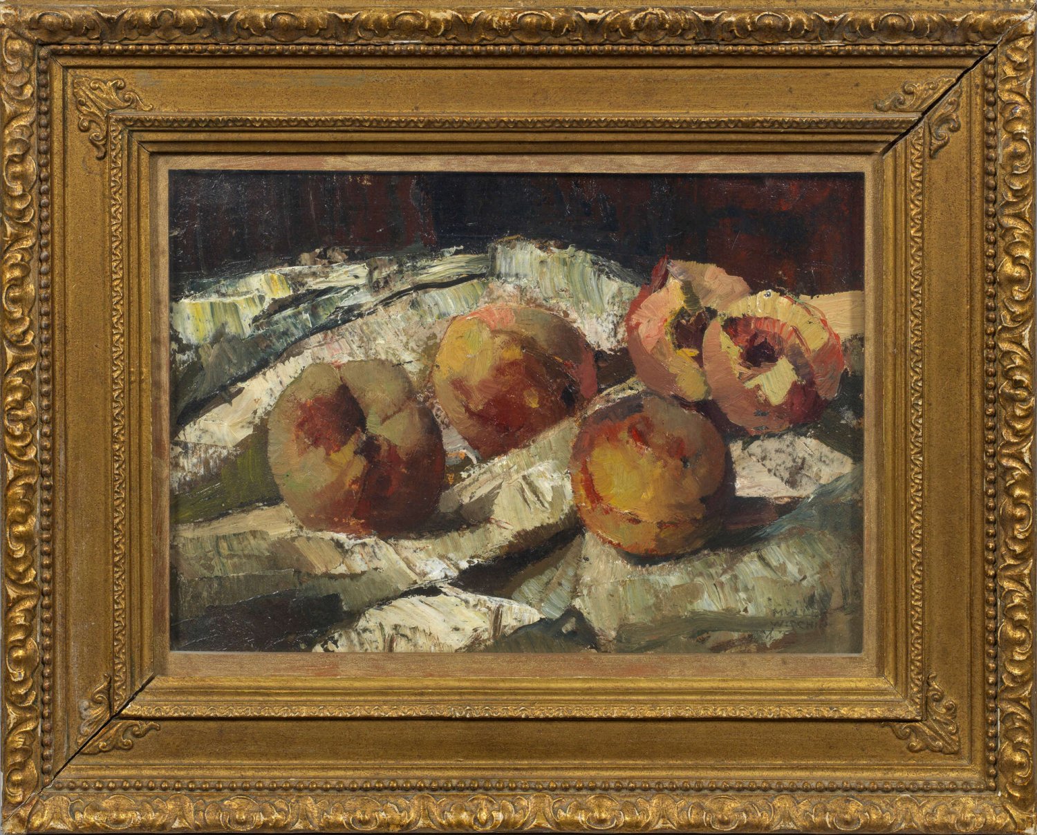 Mit lockerem, impressionistischem Duktus gemaltes, von Cézanne inspiriertes Stillleben Müller-Wischins, der mit Werken u. a. in der Neuen Pinakothek in München und im Belvedere in Wien vertreten ist. Öl/Malkarton. Verso sign. u. betitelt mit Ortsangabe München. 24 cm x 32,5 cm. Rahmen.