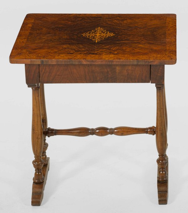 A German walnut veneered Biedermeier sewing table.