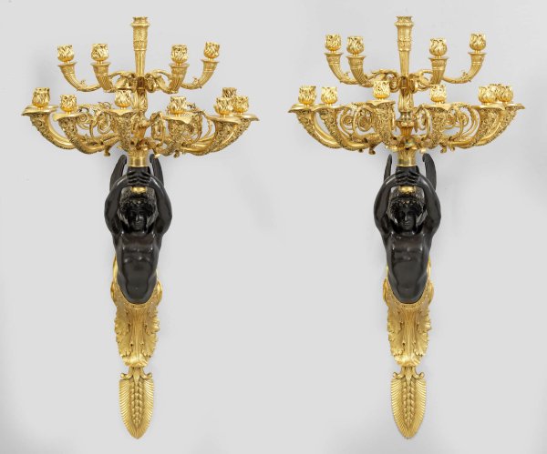 Paar monumentale Empire-Wandgirandolen im Stil von Antoine-André Ravrio