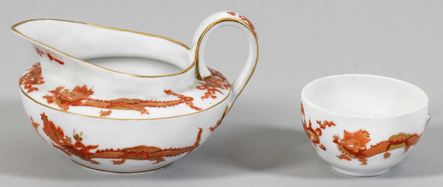 Lot 2554: Sahnekännchen und Tasse mit Dekor "Roter Drache"