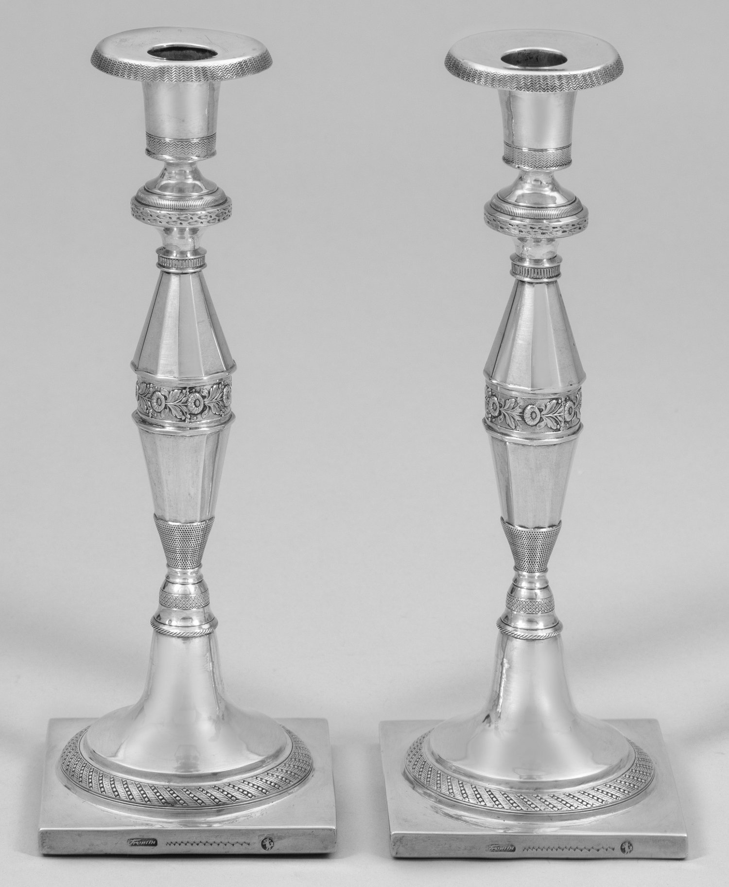 A pair of weighted candlesticks by Johann Heinrich Fromm (master since 1812). Test-, city- and master´s mark.