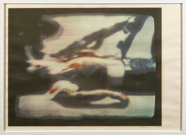 Farbserigraphie/Papier, 1970. Sign. u. nummeriert 3283/5000. Blindstempel mit Betitelung, Angaben zum Herausgeber und Drucker "Edition München International (/) Dorothea Leonhart (/) Druck Dietz Offizin". Berühmte Politpop-Grafik Hamiltons, das einen bei Protesten gegen den Vietnamkrieg niedergeschossenen Studenten zeigt. 3000 Exemplare der Auflage gingen bei einem Wasserschaden verloren. Ger. gebräunt.; Blatt ca. 72,5 cm 102 cm. Rahmen.