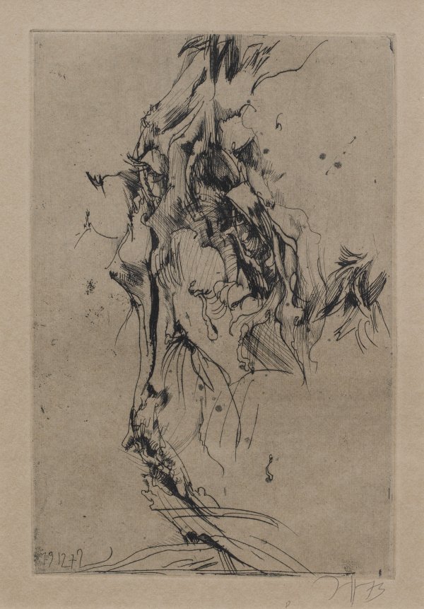 Etching and aquatint(?) on light brown paper, 1972/73. Trial proof aside from the edition of 90, published in 1973. Hand-signed and dated (19)73. Further dated (19)72 in the plate.