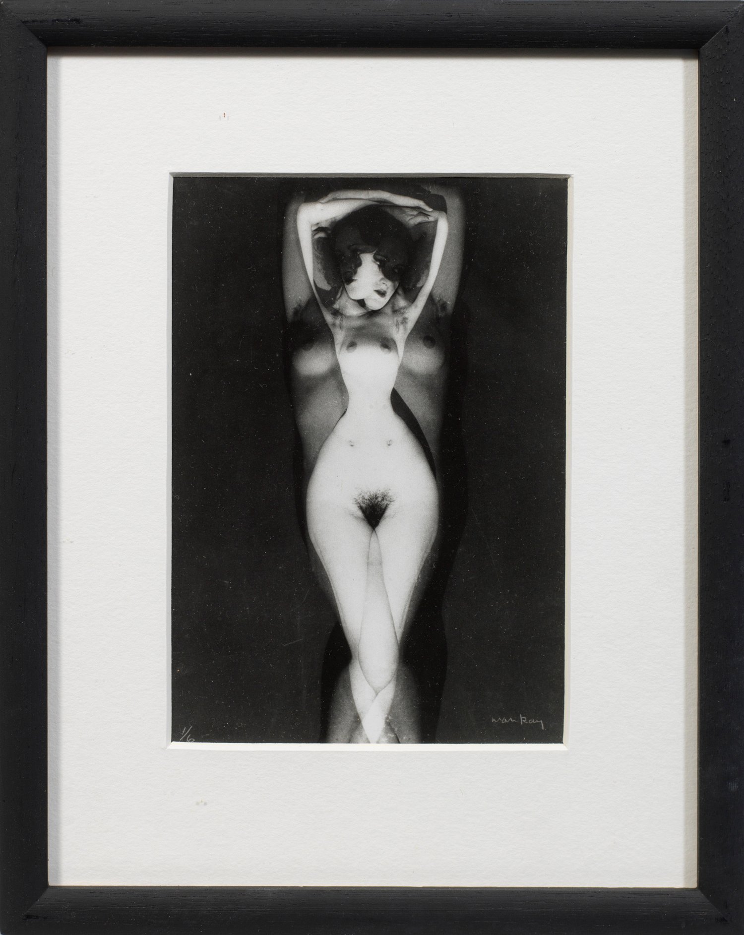 Silbergelatineabzug/seidenglänzendes Papier 1924. Vom Man Ray Trust ADGAP autorisierter, posthumer Abzug für eine Ausstellung in der Galerie Couvrat Devergnes, Paris, 21. Mai-15. Juli 1992. Im Abzug sign. u. nummeriert 1/6. Verso Stempel der Galerie u. Ausstellung sowie Etikett mit Copyright-Angabe. Blatt ca. 17,5 cm x 12,5 cm (Passepartoutausschnitt). Rahmen.