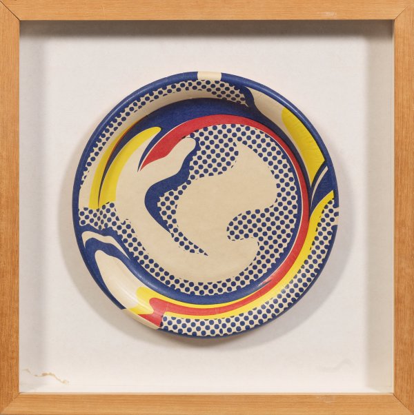 Serigraph (Screenprint) in colours on paper plate, 1969. Typographic inscription "Roy Lichtenstein © On 1st inc. 1969" on the reverse.