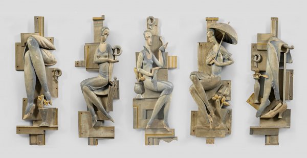 Seltener Satz von fünf Art Déco-Reliefs für das Schuhgeschäft Prange in Hamburg