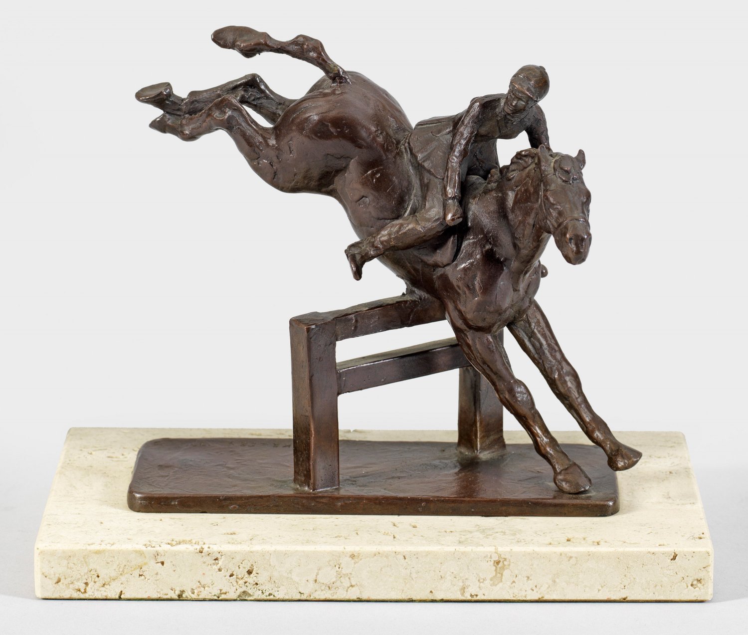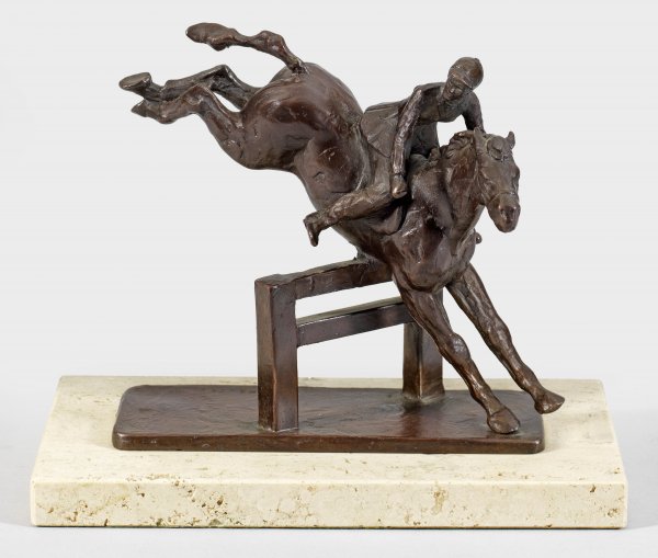 Bronze, dunkelbraun patiniert, 1977. Sign. u. dat.; Travertinsockel. Hrsg. Royal Copenhagen. Auf der Original-Plakette von Royal Copenhagen bez. u. nummeriert 385/2500. Ges.-H. 17,2 cm.