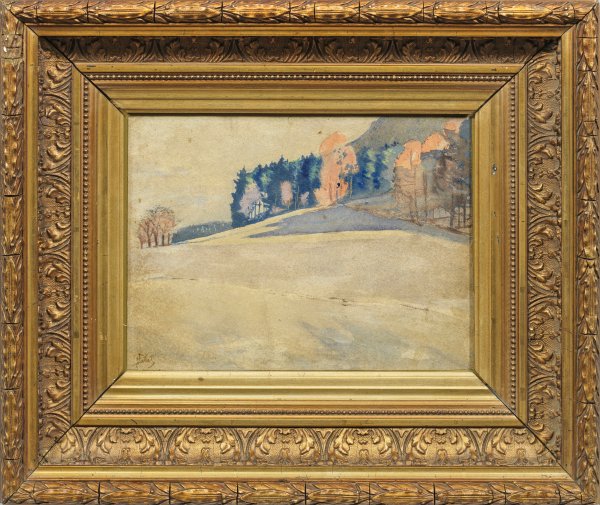 Blick auf verschneite Wiesen vor einem bewaldeten Berg. Impressionistische Darstellung des bedeutenden polnischen Malers, der an der Krakauer und Münchener Akademie studierte. Bei Fürst Anton von Radziwill in Nieswiez lernte er 1886 Kronprinz Wilhelm kennen, 1889 wurde er Hofmaler des Kaisers in Berlin. 1895 kehrte er nach Krakau zurück, wo er die Akademie reformierte. In seinen lichterfüllten Winterlandschaften nahm er die Malweise der französischen Impressionisten auf. Gouache/Papier. L. u. sign.; 23 cm x 31 cm. Rahmen.
