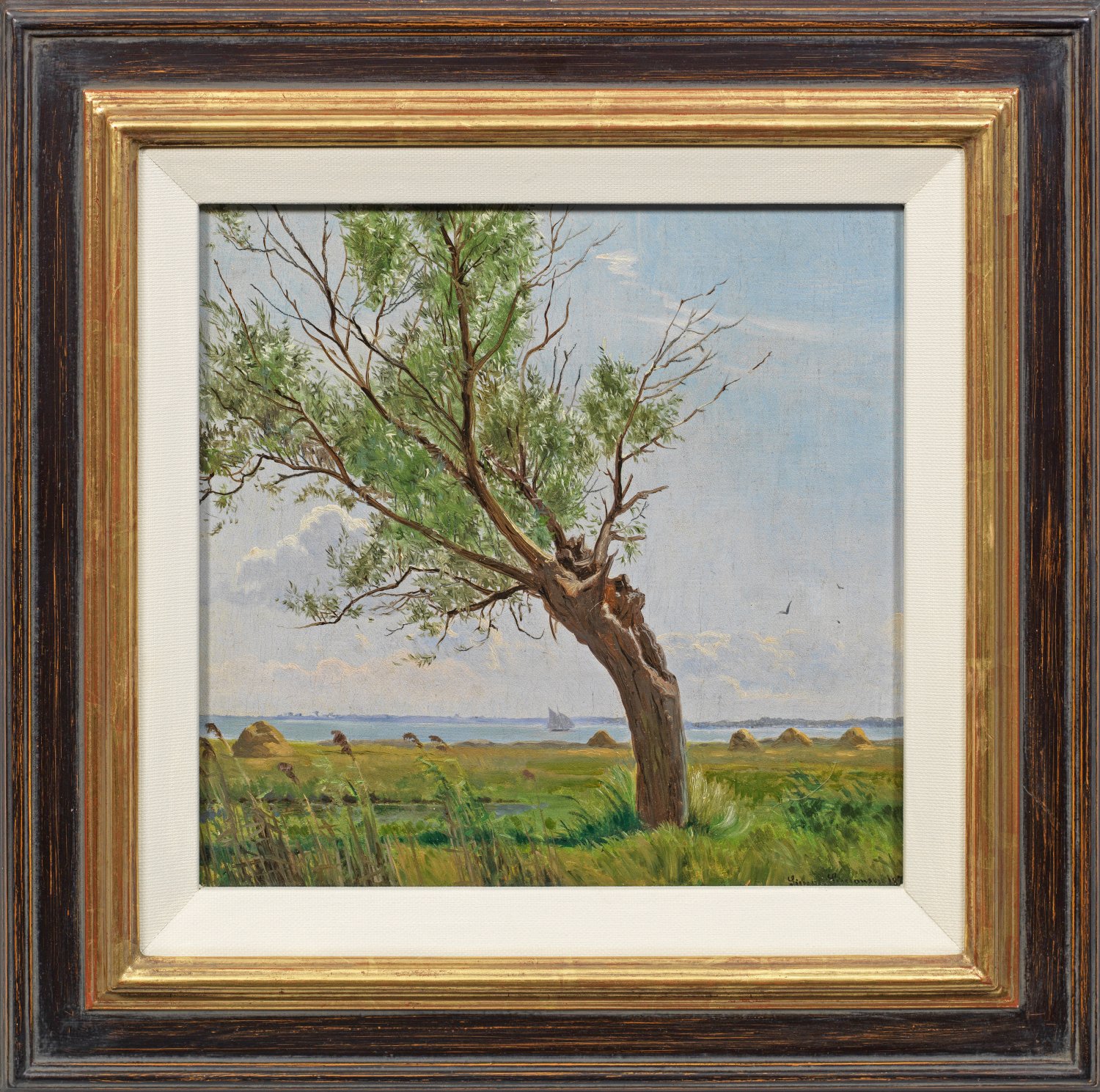 Mit feinem Pinsel und minutiöser Beobachtung ausgeführte Plein air-Malerei des dänischen Künstlers, der an der Kunstakademie Kopenhagen studierte und weite Studienreisen durch Frankreich und Italien unternahm. Öl/Lwd.; R. u. sign.; 27 cm x 28 cm. Rahmen.