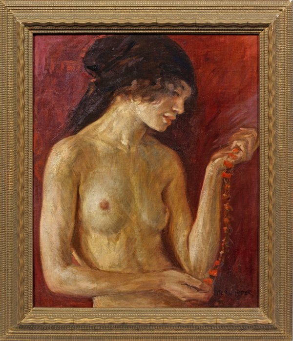 Mit weich-pastosem Duktus impressionistisches Werk des jüdischen Malers, der in Ungarn und an der Académie Julian in Paris studierte. Perlmutter erhielt Gold- und Silbermedaillen auf Ausstellungen in Budapest, München, Brüssel und St. Louis. Mehrere seiner Gemälde, darunter sein Selbstporträt in den Uffizien in Florenz, wurden von Kunstmuseen in Ungarn und Italien erworben. Öl/Lwd.; R. u. sign.; 60 cm x 51 cm. Rahmen.