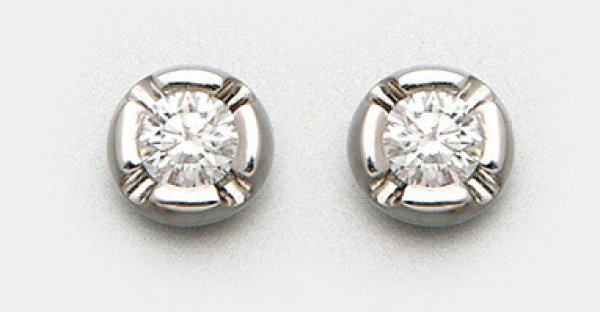 Paar klassische Brillant-Solitärohrringe Weißgold, teilw. mit Gelbgold verbödet, gest. 750. Zentral besetzt mit jeweils einem Brillanten von zus. ca. 0,70 ct. (I-J/si). Ges.-Gew. ca. 4,14 g.