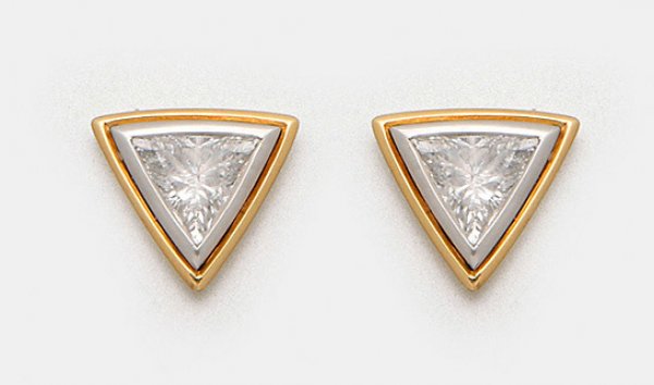 aus den 90er Jahren Gelbgold, teilw. mit Weißgold verbödet, gest. 750. Zentral besetzt mit zwei Diamanten im Triangelschliff von zus. ca. 2,50 ct. (I-J/vs-si), Herstellerzeichen. Ges.-Gew. ca. 7,06 g.