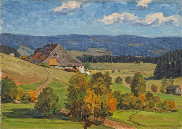 Um 1920-1925 entstandene, impressionistische Landschaft. Öl/Lwd., verso 2007 vom Enkel des Großneffen Andreas Heffner bestätigt. 36 cm x 51 cm. Rahmen.