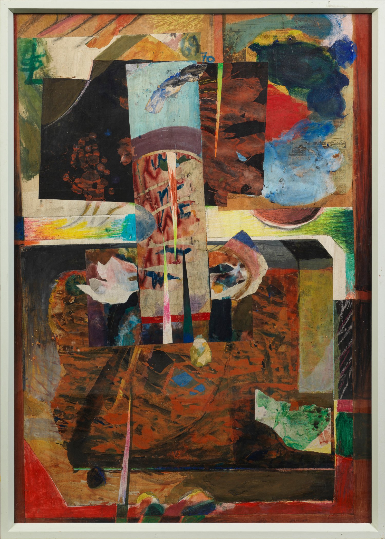 Informelles Werk des Künstlers, der nach Kriegsteilnahme Ende der 1940er Jahre an der Berliner Kunstakademie studierte und 1951 den Berliner Kunstpreis erhielt. Als Mitglied des Deutschen Künstlerbundes war er bis in die 1970er Jahre regelmäßig auf dessen Ausstellungen, u. a. in Düsseldorf, München und Essen vertreten. Mischtechnik und Zeitungscollage/leichter Karton. L. o. monogr. und dat. 69/79; Verso bez., betitelt, datiert 1969/1970 und Ausstellungsetikett. 138 cm x 98 cm. Originaler Künstlerrahmen.