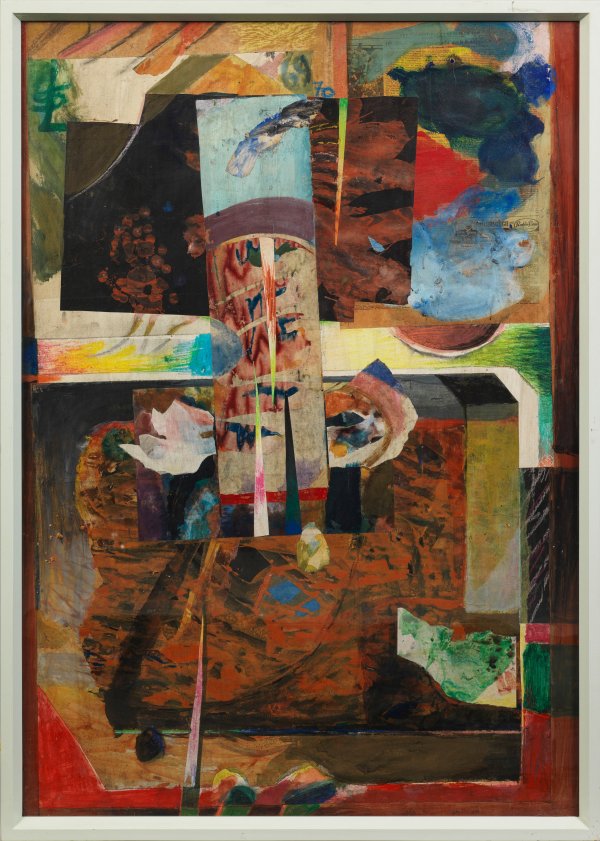 Mixed media and collage on light cardboard. Monogrammed, titled, dated and exhibition label on the reverse.