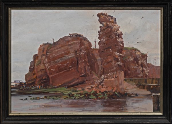 Blick auf die Lange Anna. Anderson, der bei Manfred Bluth in Kassel studierte, wurde 2009 Mitglied der Freien Akademie der Künste in Hamburg. 2014 fand eine Retrospektive im Schloss Gottorf statt. Öl/Hartfaser. Verso sign., betitelt u. dat. 1998. 28 cm x 40 cm. Rahmen.