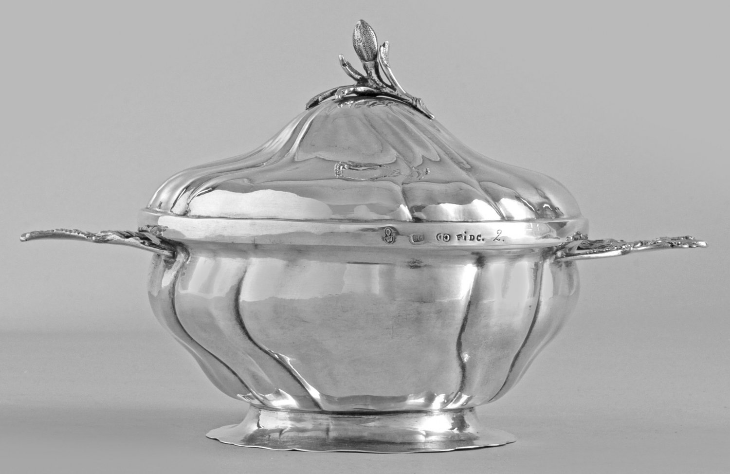 A Rococo lidded silver bowl by Christian II Drentwett (master since 1754). Test, city and master´s mark.