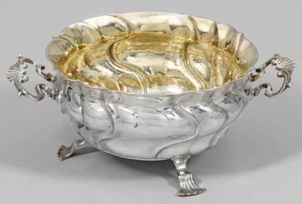 A two handled silver Rococo bowl by Johann Jakob II Biller (master since 1746). Gilt inside. Test, city and master´s mark.