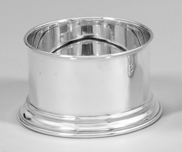 Flaschenuntersetzer Silber. Über getrepptem Stand zylindrische, glatte Wandung. Gest. 925. Gew. ca. 180 g. H. 6 cm. D. 9,5 cm.