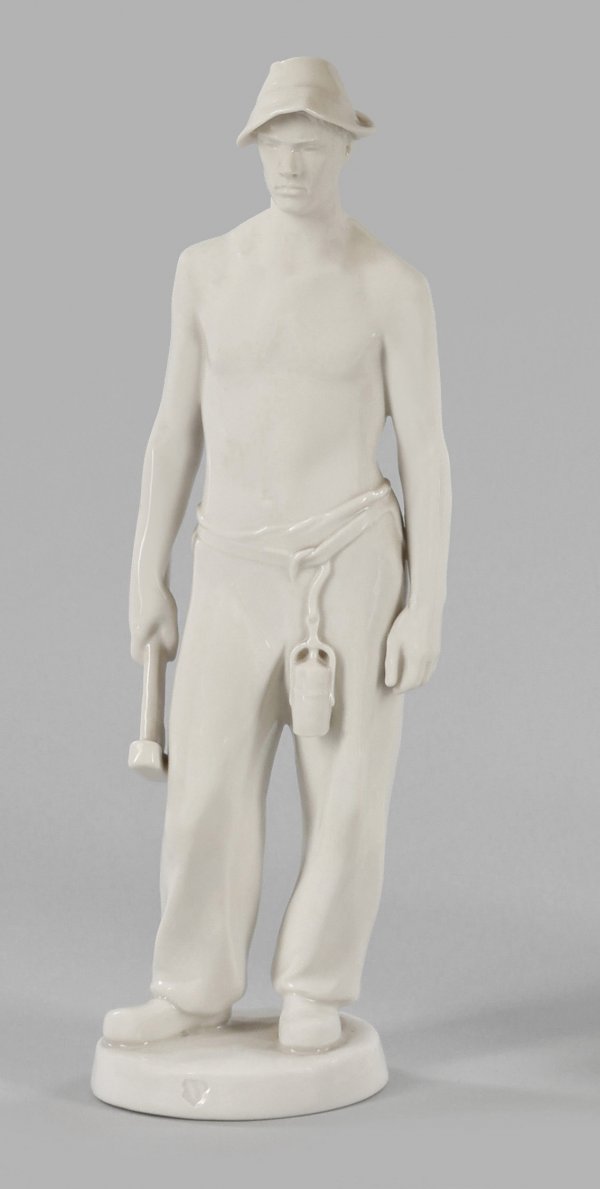 Junger Bergmann Weißporzellan. Im Kontrapost stehender Bergmann auf runder Plinthe. Entw. Resl Schröder-Lechner. Modell-Nr. 889. Minim. ber.