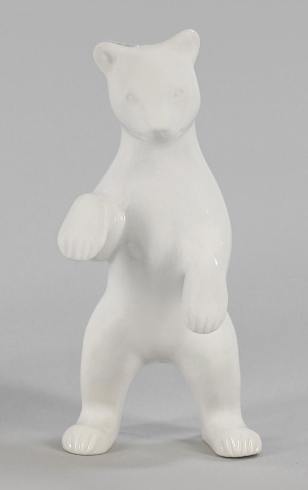 Stehender Bär Weißporzellan. Entw. Johannes Henke, 1971. Zeptermarke. H. 19,5 cm.