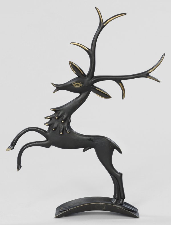 Messing, dunkel patiniert. Walter Bosse produzierte Messingfiguren für Kinderzimmereinrichtungen unter dem Label seiner jung verstorbenen Partnerin Herta Baller. Gest. "Baller Austria". Ges.-H. 40 cm.