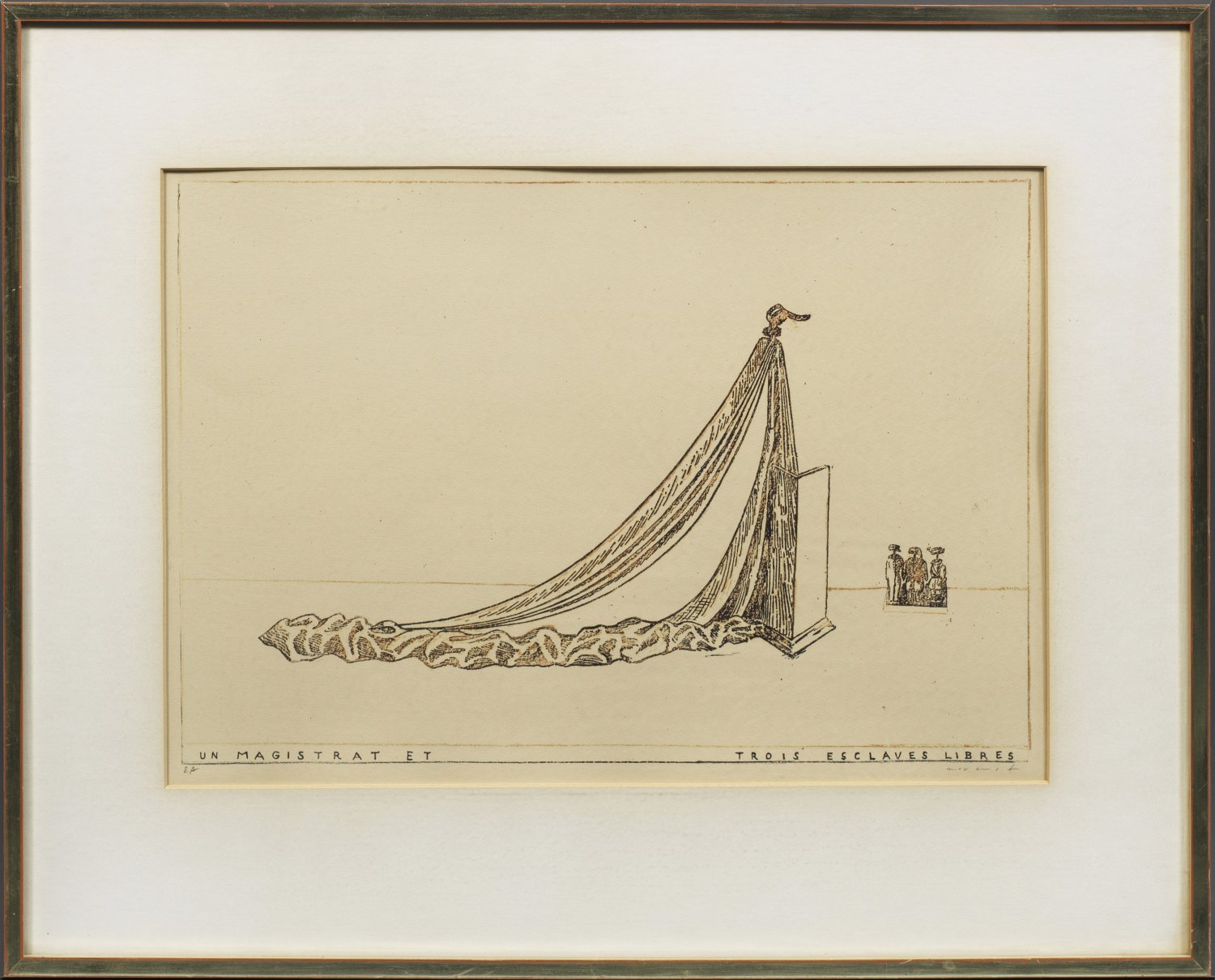 "Un Magistrat et trois esclaves libres." (Ein Magistrat und drei freie Sklaven). Originaltitel