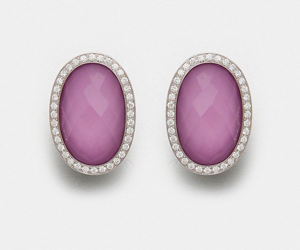 A pair of earrings by Meissen "My little Mystery" set with rock crystal on violet porcelain and diamonds approx. 0,57 ct. (F-G/vvsi), in 18 k white gold. Manufacturer's mark.