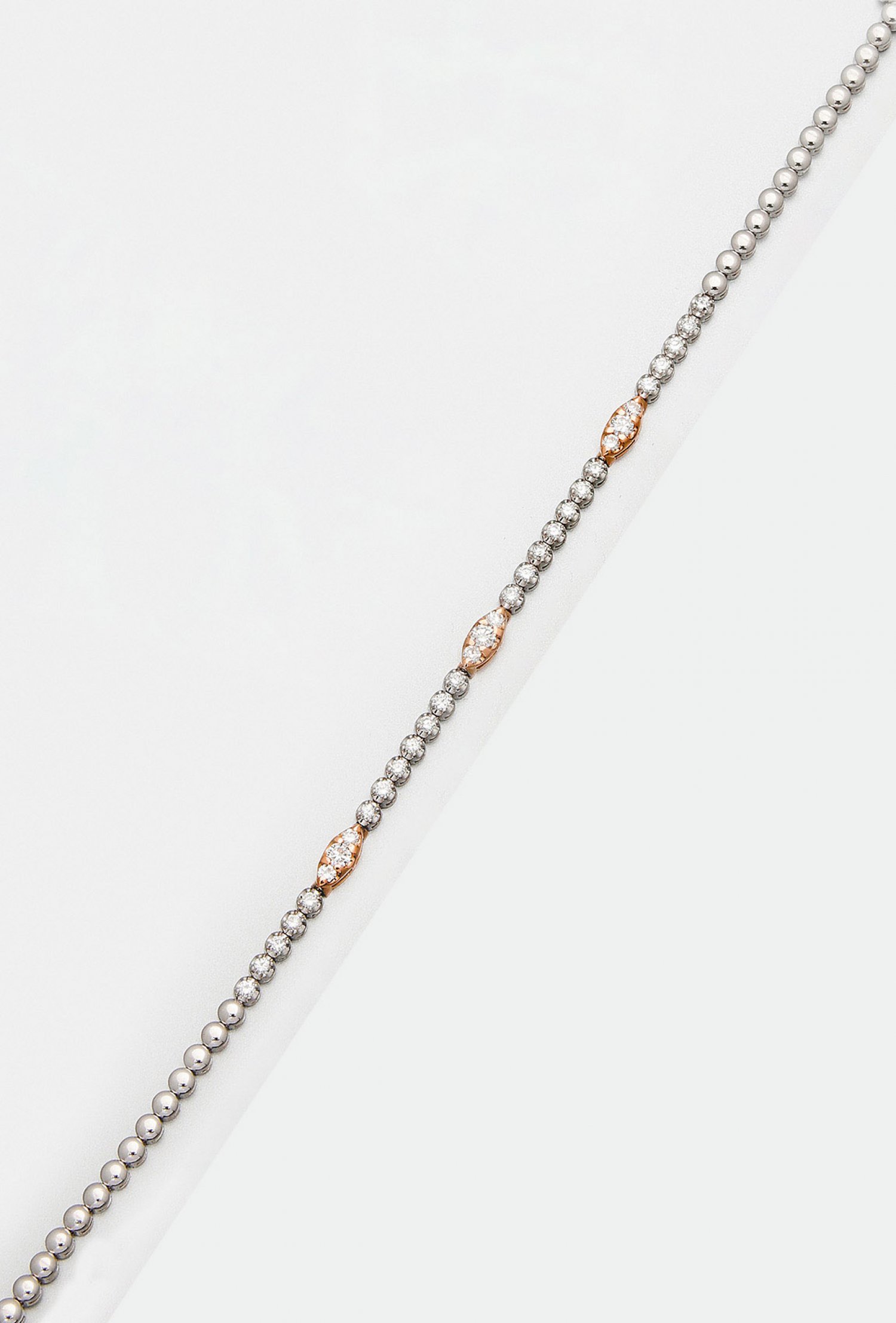 Feines Brillant-Armband Weißgold, teilw. mit Gelbgold verbödet, gest. 750. Schauseitig besetzt mit Brillanten von zus. ca. 1,03 ct. (H-J/si-pi). Gew. ca. 8,18 ct.