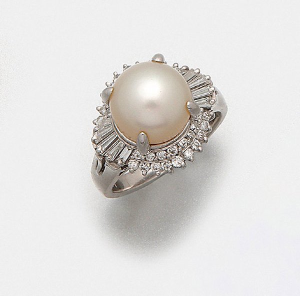A ring set with a white South Sea pearl and diamonds approx. 0,67 ct., in 18 k white gold.