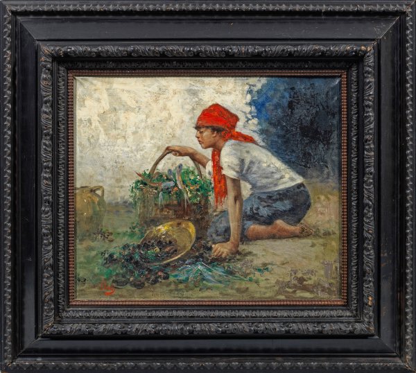 Impressionistisch gemaltes Straßenmotiv aus Neapel. Irolli studierte ab 1877 an der Akademie seiner Heimatstadt und beteiligte sich schon ab 1879 regelmäßig an Ausstellungen in Neapel, seit 1880 auch an den großen nationalen Ausstellungen in Mailand, Turin und Venedig. Außerhalb Italiens beschickte er öfters die Ausstellungen in München, Berlin, feierte Erfolge auf dem Salon in Paris, in London und Barcelona. Neben jungen Müttern schilderte Irolli mit Vorliebe Kinder und Alltagsszenen. Öl/Lwd.; L. u. sign.; 50,5 cm x 60,5 cm. Rahmen.