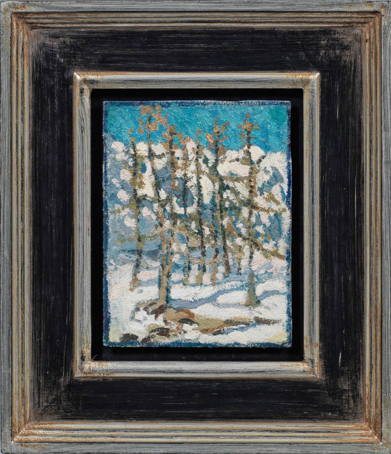 Spätimpressionistisches Werk Köhler-Roebers, die 1906-1914 in der fortschrittlichen Malschule von Johannes Walter-Kurau in Dresden und der Debschitz-Schule in München lernte. Öl/Karton, auf MDF-Platte kaschiert. Verso Etikett mit Nachlass-Stempel u. Nr. 79 sowie Etikett der Retrospektive im Museum Zitadelle, Berlin-Spandau, 2020. Ca. 20 cm x 15 cm. Rahmen.