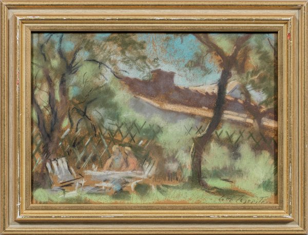 Wohl in den 1960er Jahren entstandene, impressionistische und expressiv-realistische Stilemente verbindende Arbeit der bedeutenden deutsch-schwedischen Malerin, die 1937 wegen ihrer jüdischen Abstammung aus Deutschland emigrieren musste. Pastell/Papier. R. u. sign.; Ca. 21 cm x 29,5 cm. Rahmen.
